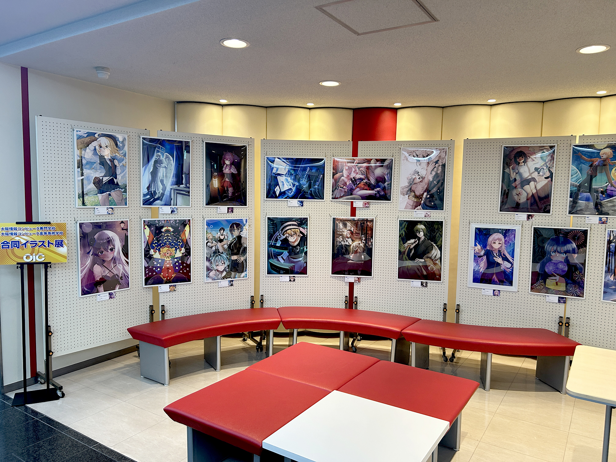 2025年9月20日(土)~10月10日(金)までの期間、大阪情報コンピュータ専門学校の学生と大阪情報コンピュータ高等専修学校の生徒が描いたイラストを展示するOIC合同イラスト展を、本校1階のエントランスホールにて開催しています。