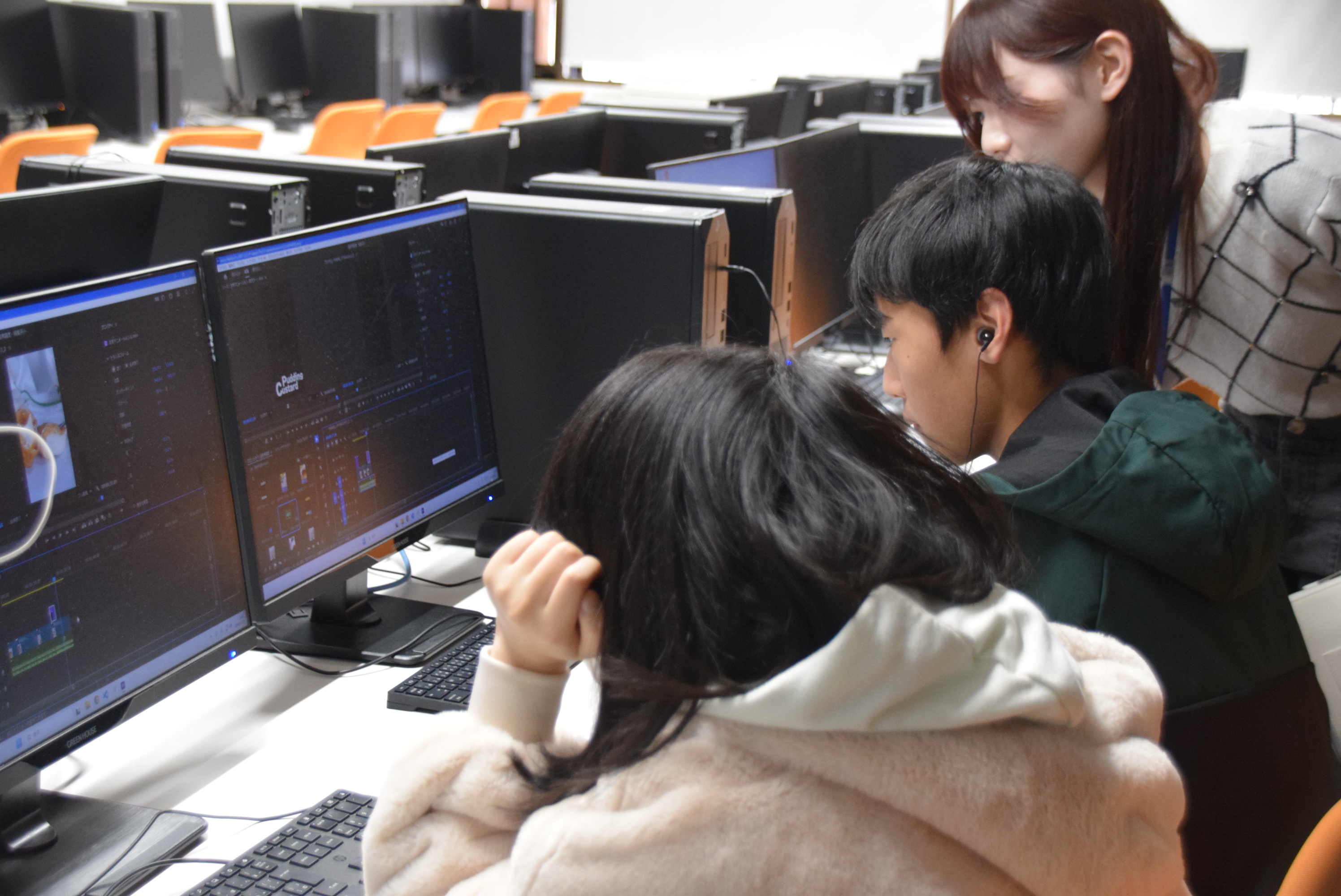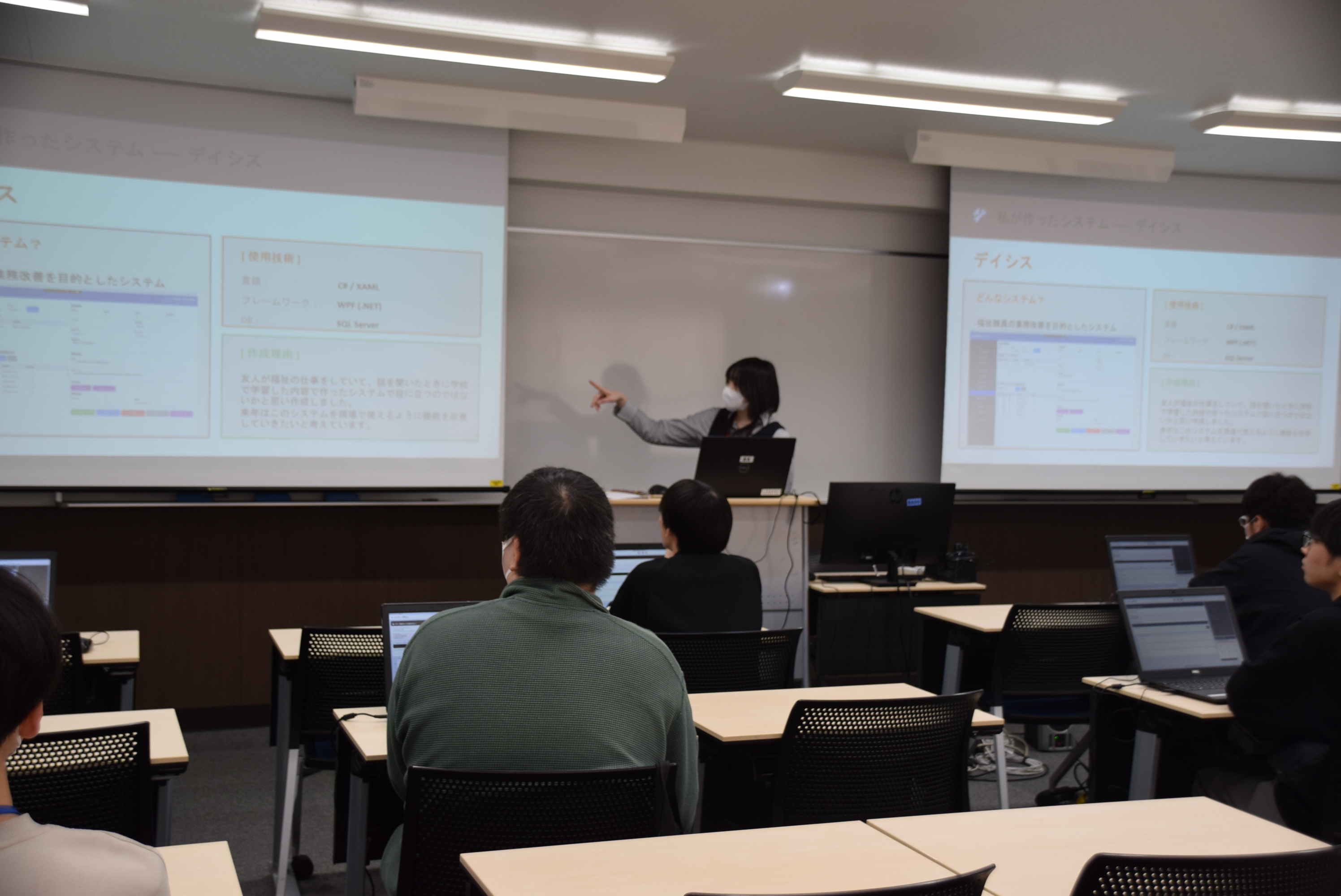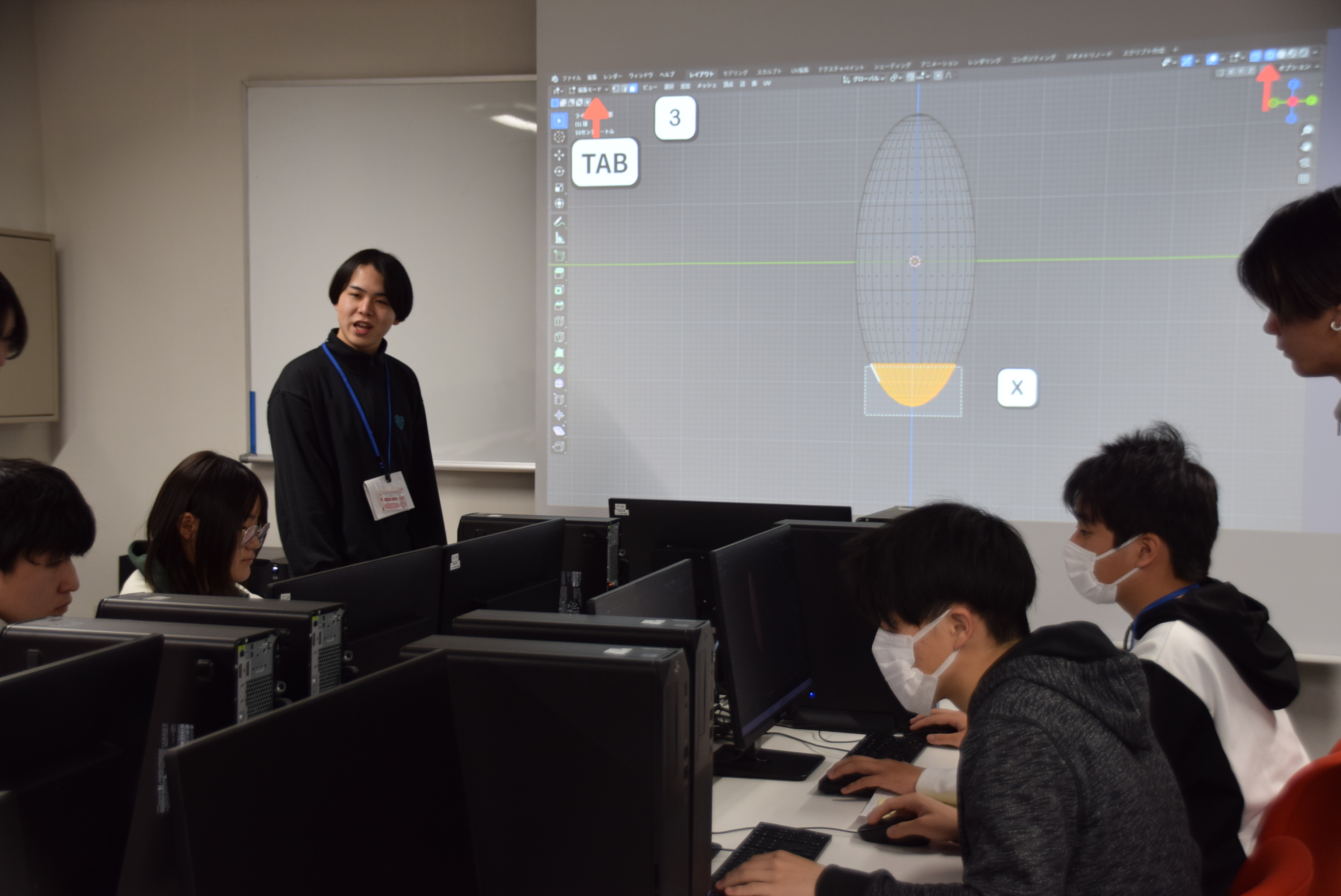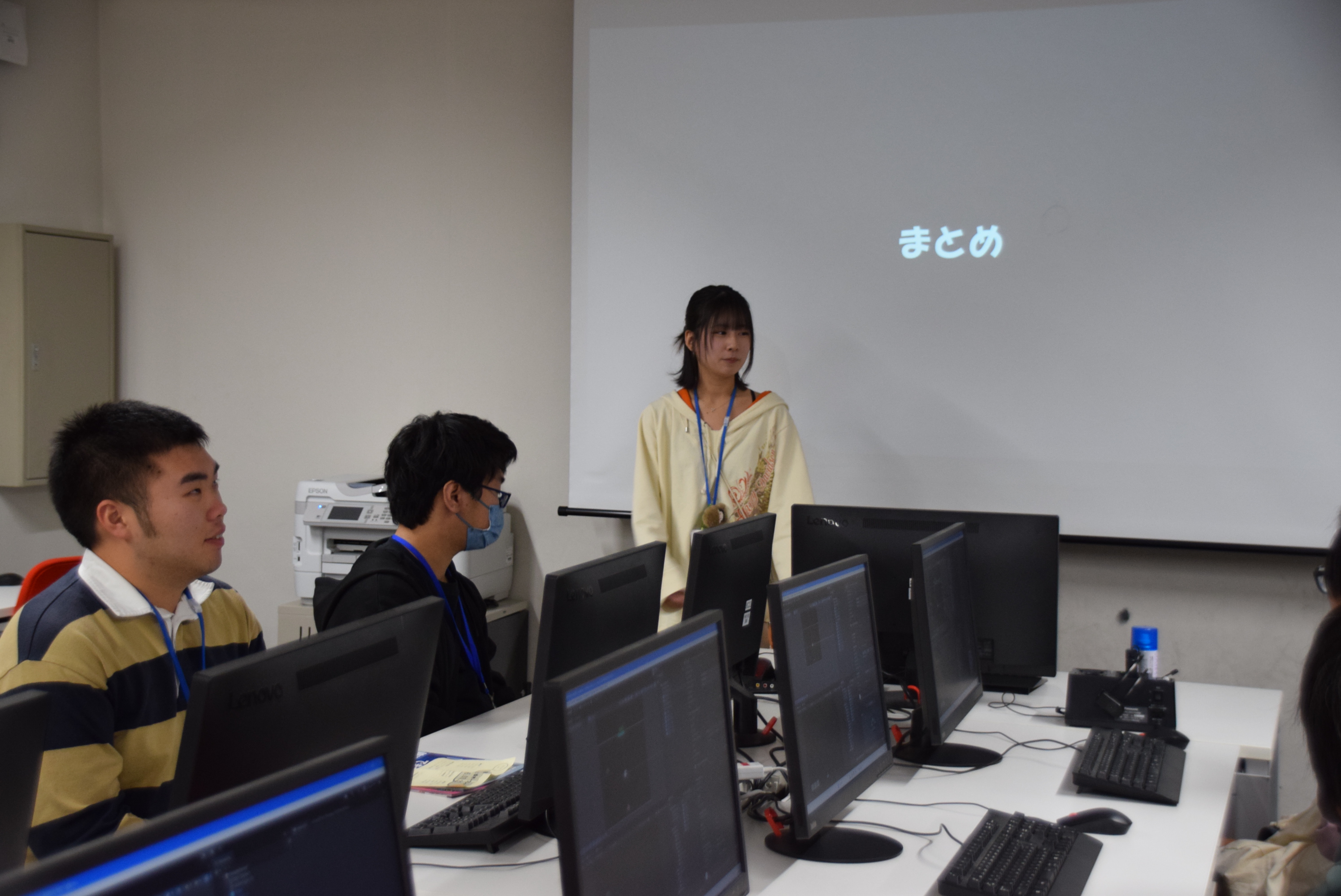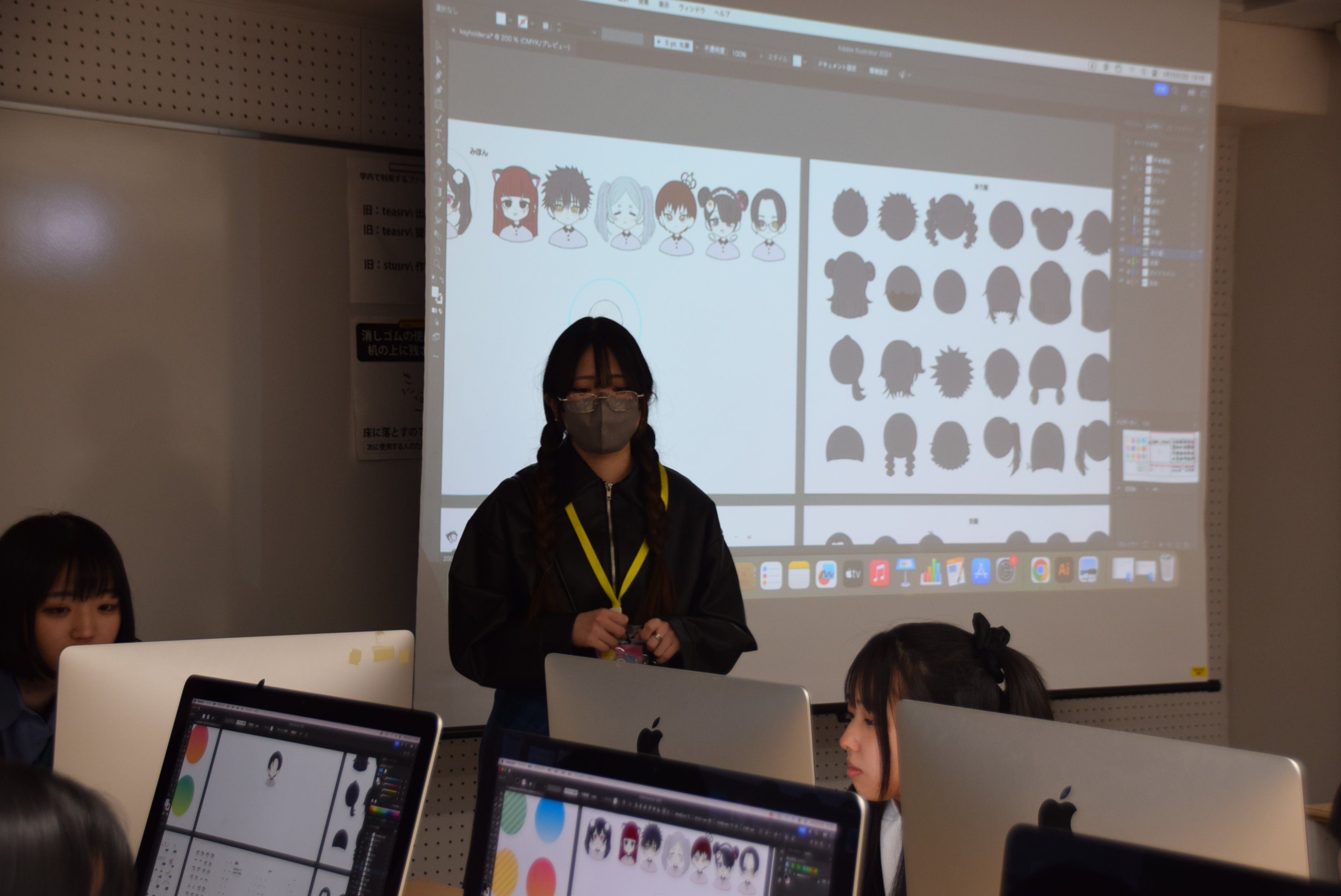 ネットワークセキュリティ専攻の豊福さん(3年)、ゲームプログラマー専攻の亀山さん(3年)、ゲームデザイナー専攻の福田さん(3年)、CG映像クリエイター専攻の河野さん(3年)、アートディレクター専攻の木谷さん(2年)が、各分野のトライアルレッスンの講師を担当しました☺