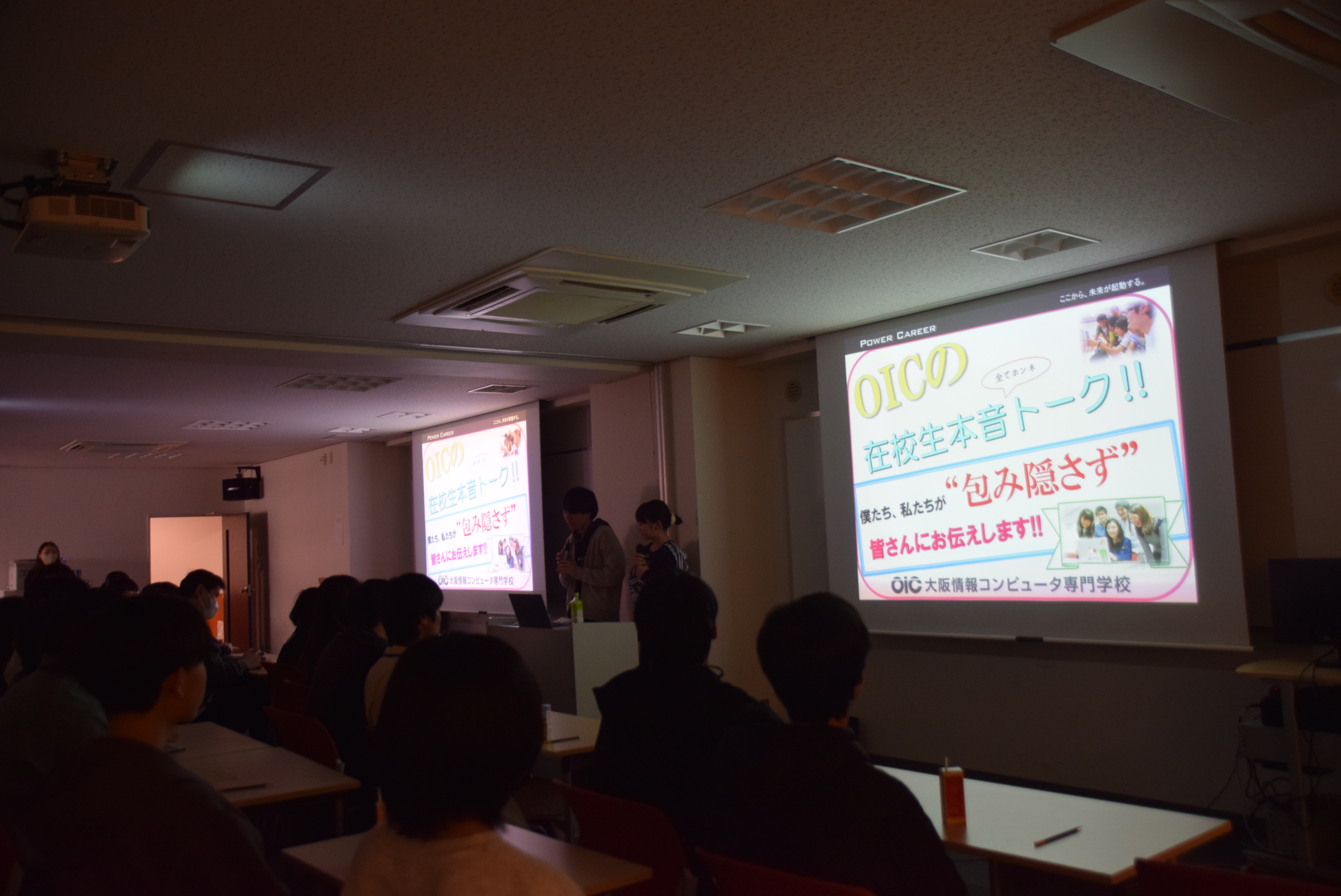 友達はできるかな…?初心者でも本当についていける?資格について知りたい!!など、進路を決める上で不安なことや、知りたいことにどーんと在校生がお答えし、OICのオススメポイントや先生についても語ってくれました☺♬
