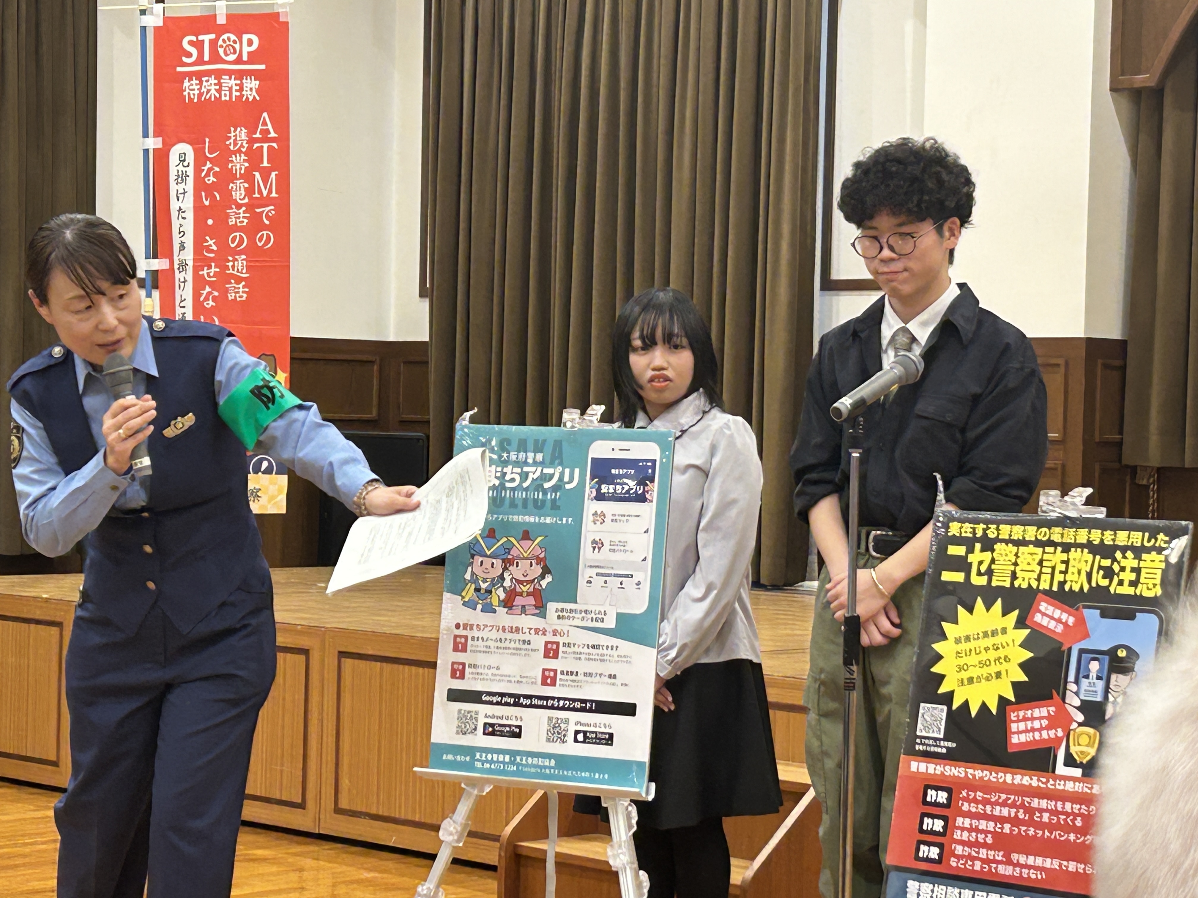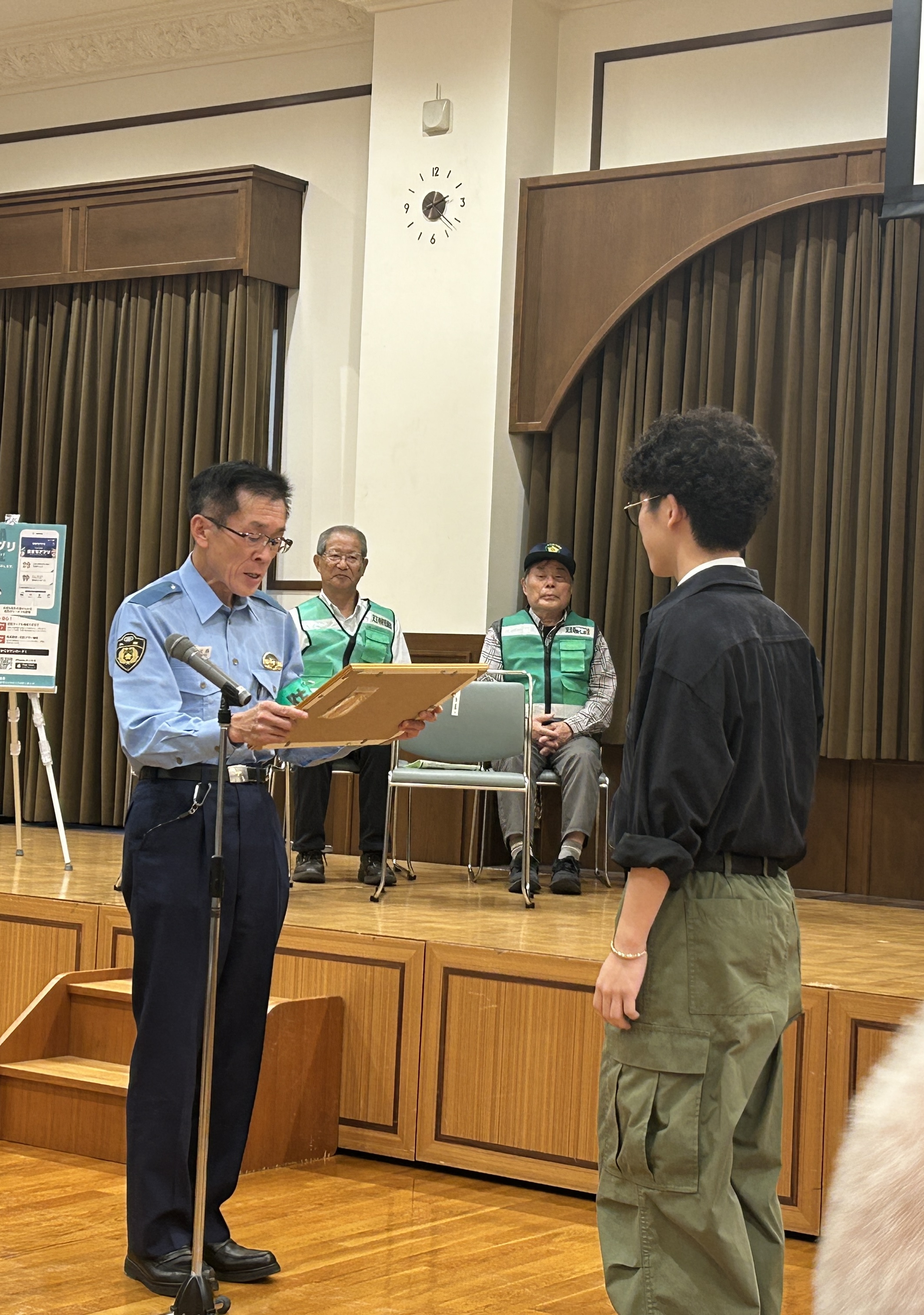 また、2025年10月28日に天王寺区役所内で行われた天王寺区民大会において、天王寺警察署より感謝状が贈られるということで、学生が式典に参加しました。