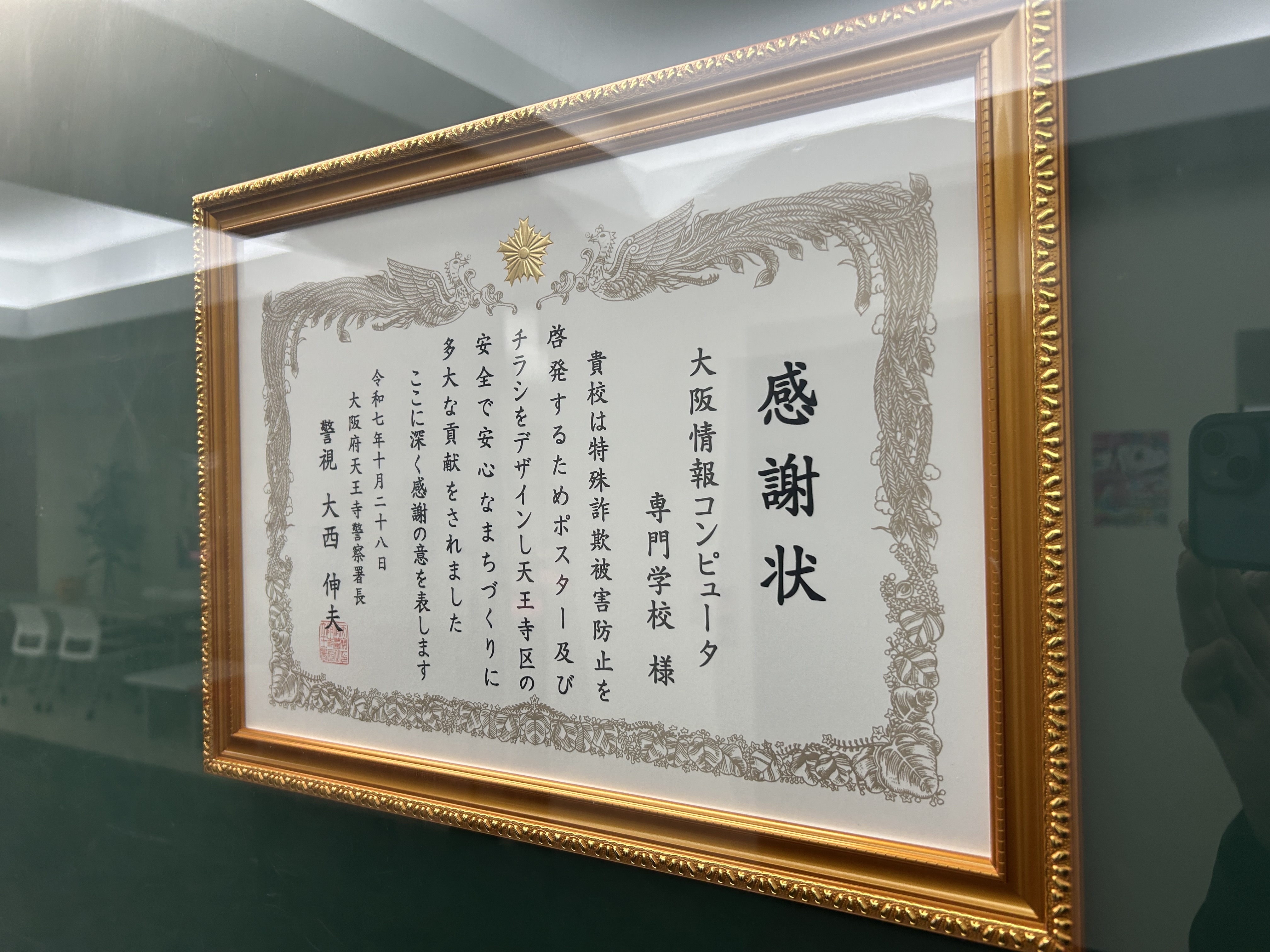 【地域貢献・官学連携】ポスター・チラシ制作で天王寺警察署より感謝状をいただきました!