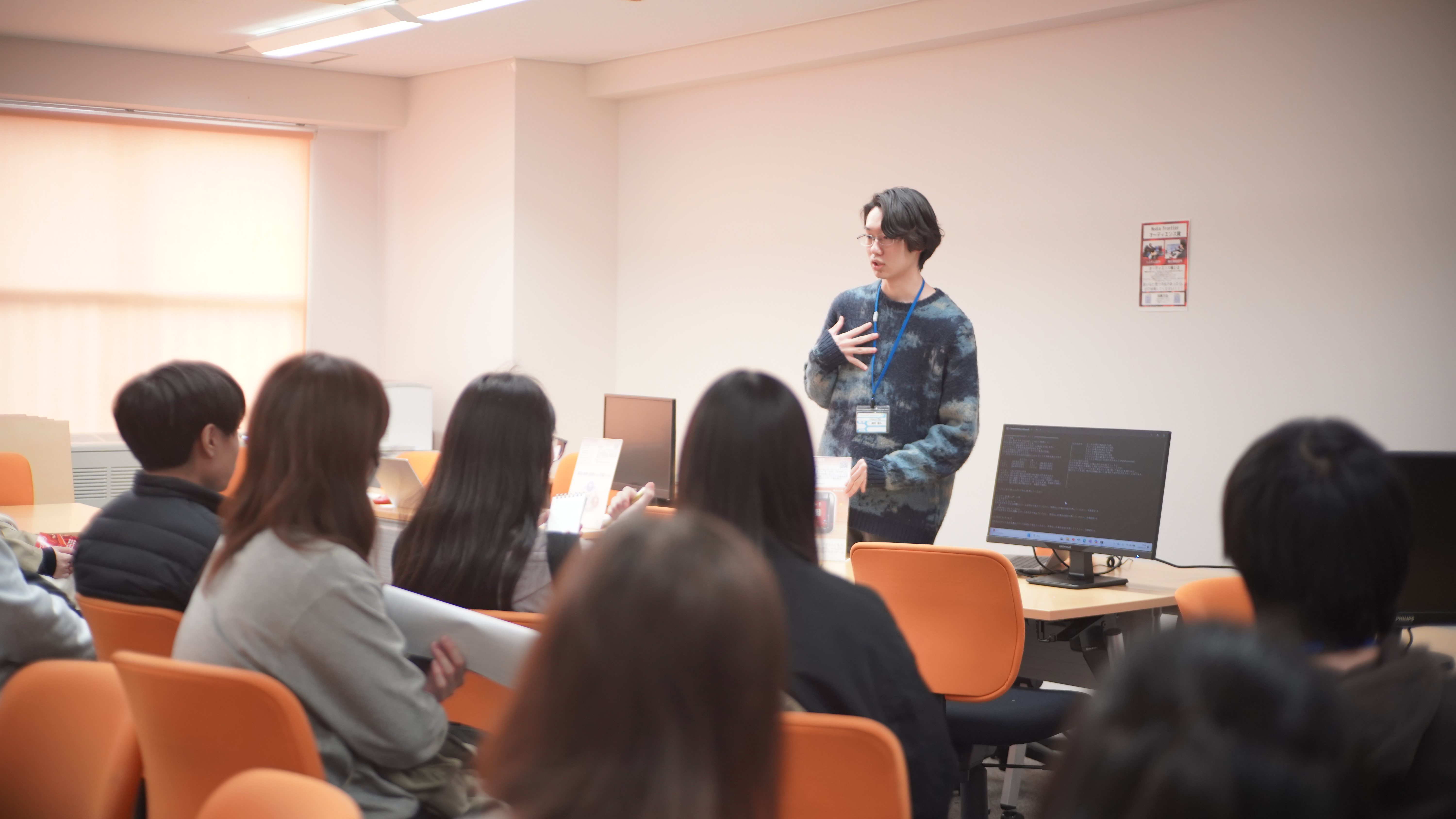 学校説明を聞いたあと、お待ちかねの『学生作品展(メディアフロンティア)』の見学・体験です!!☺