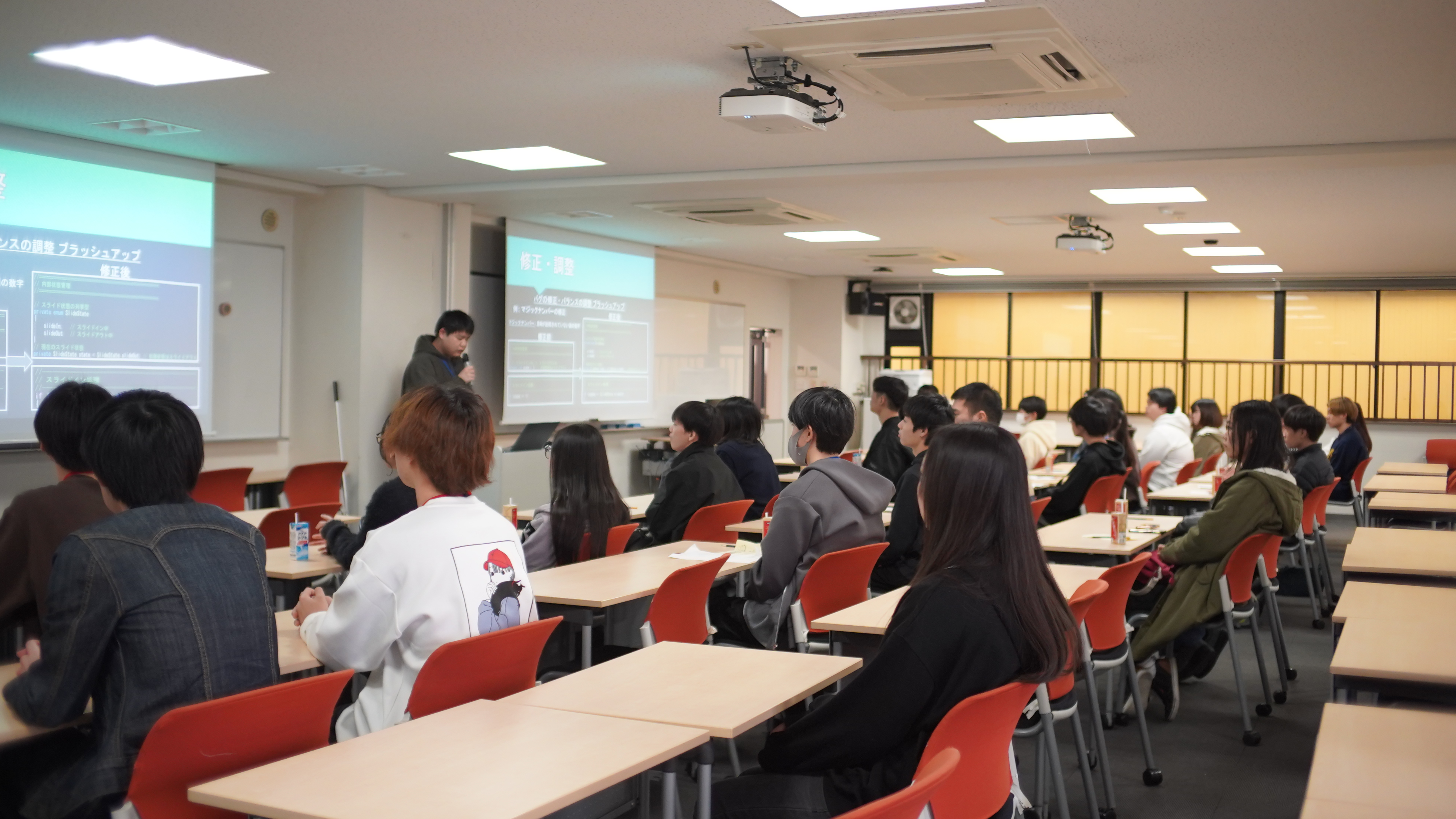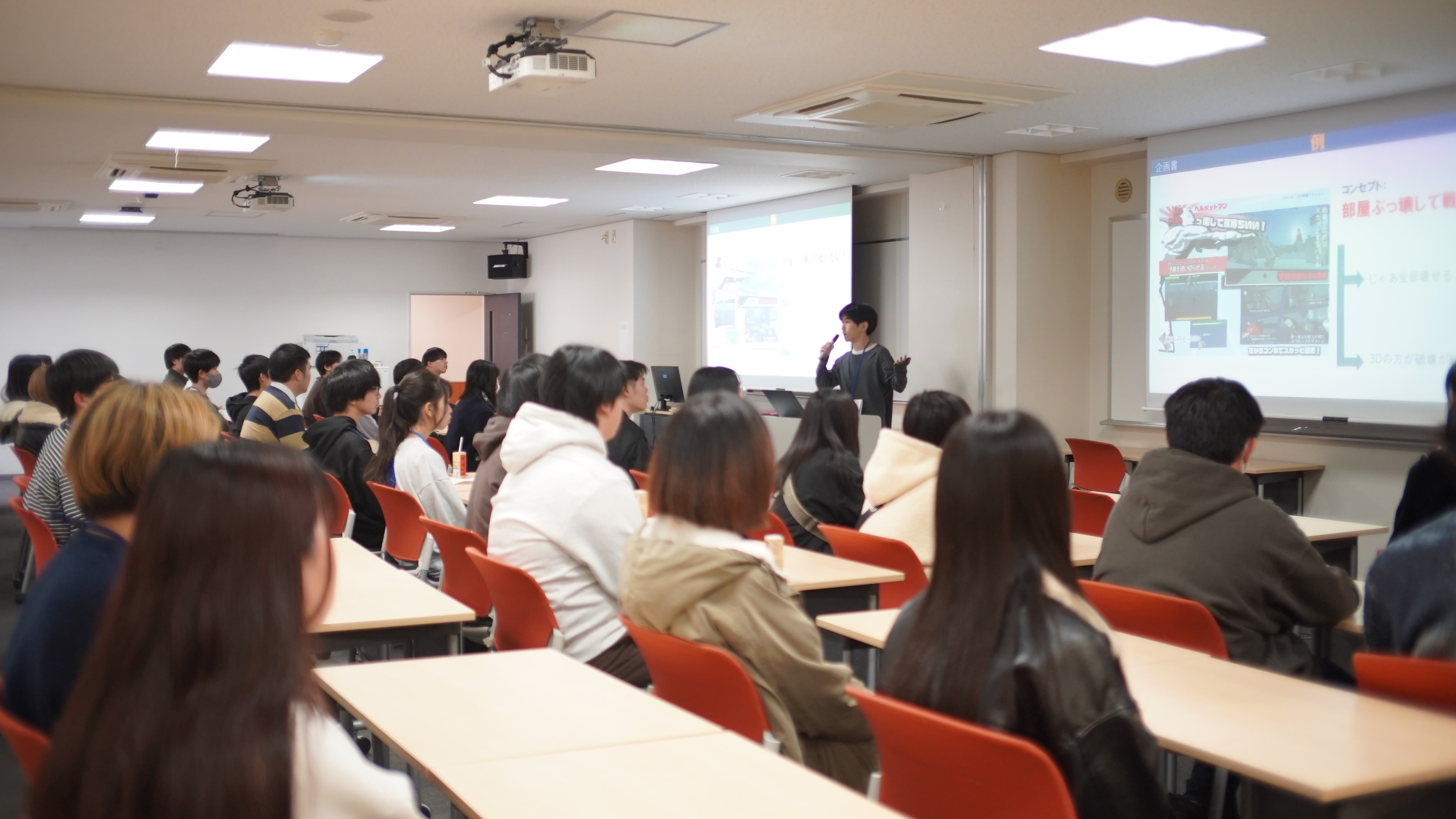 上記5名に発表してもらいました。制作過程においてどのような工程があったのか、制作期間、難しかったところ、やりがい、チーム制作を通して感じたこと、やっぱりものづくりは楽しい!!など、作品制作の裏側を一挙大公開☺