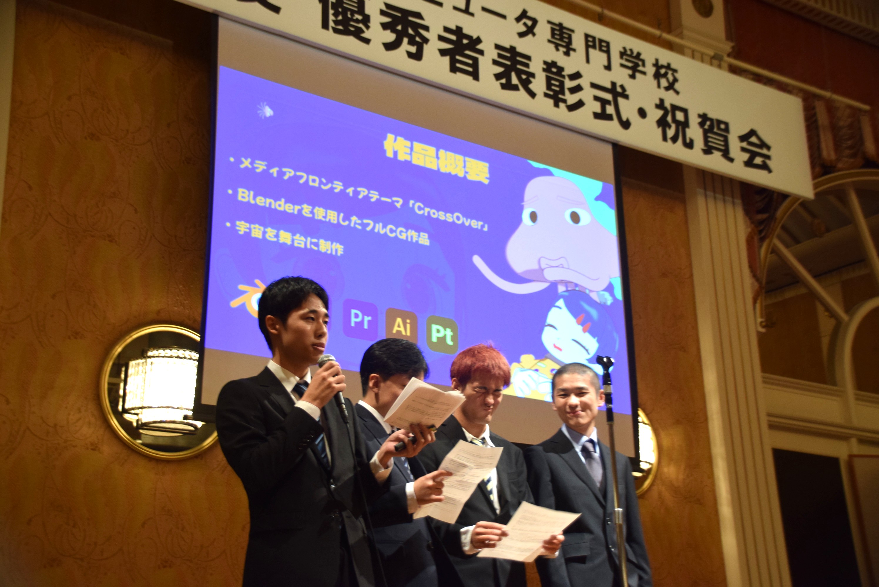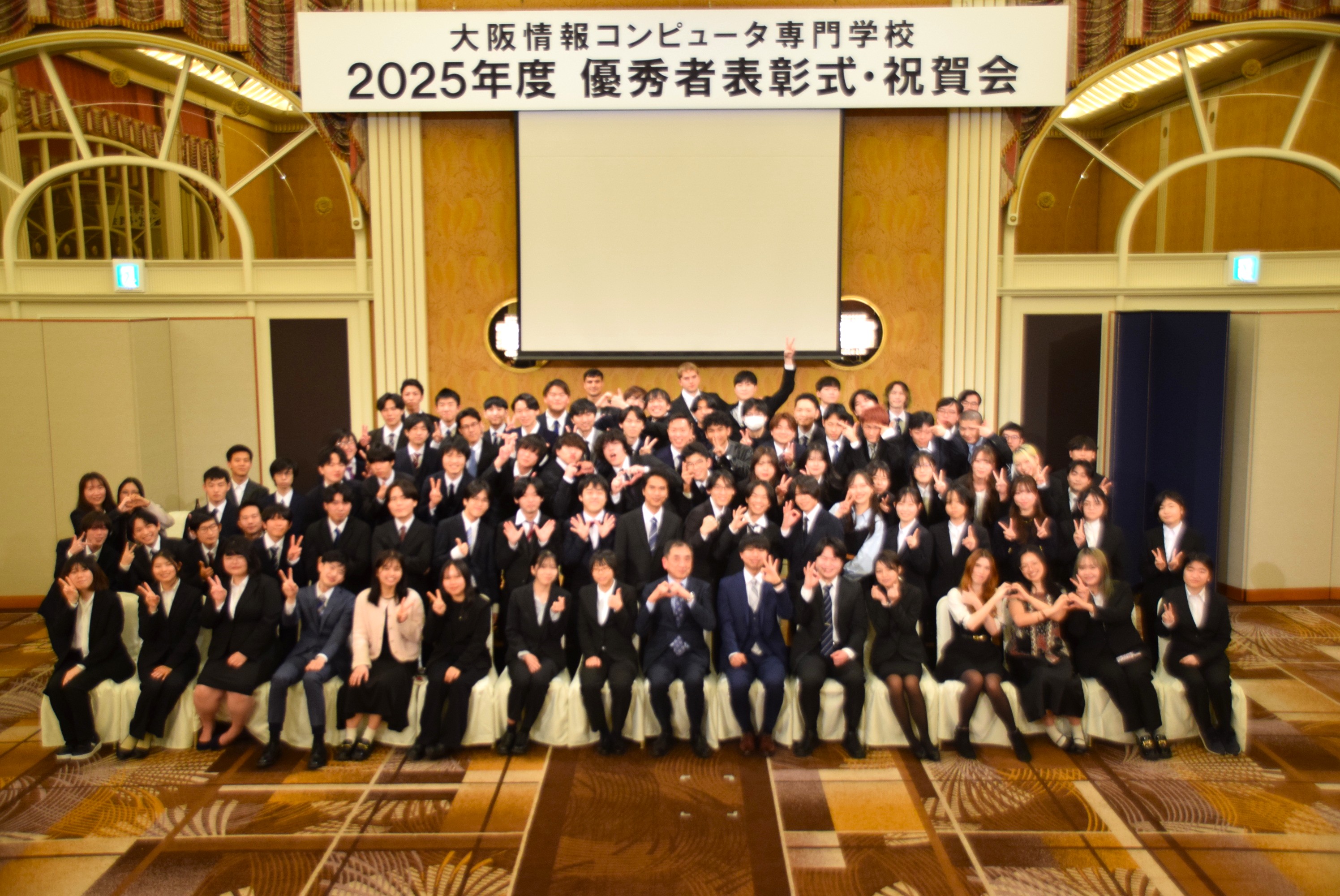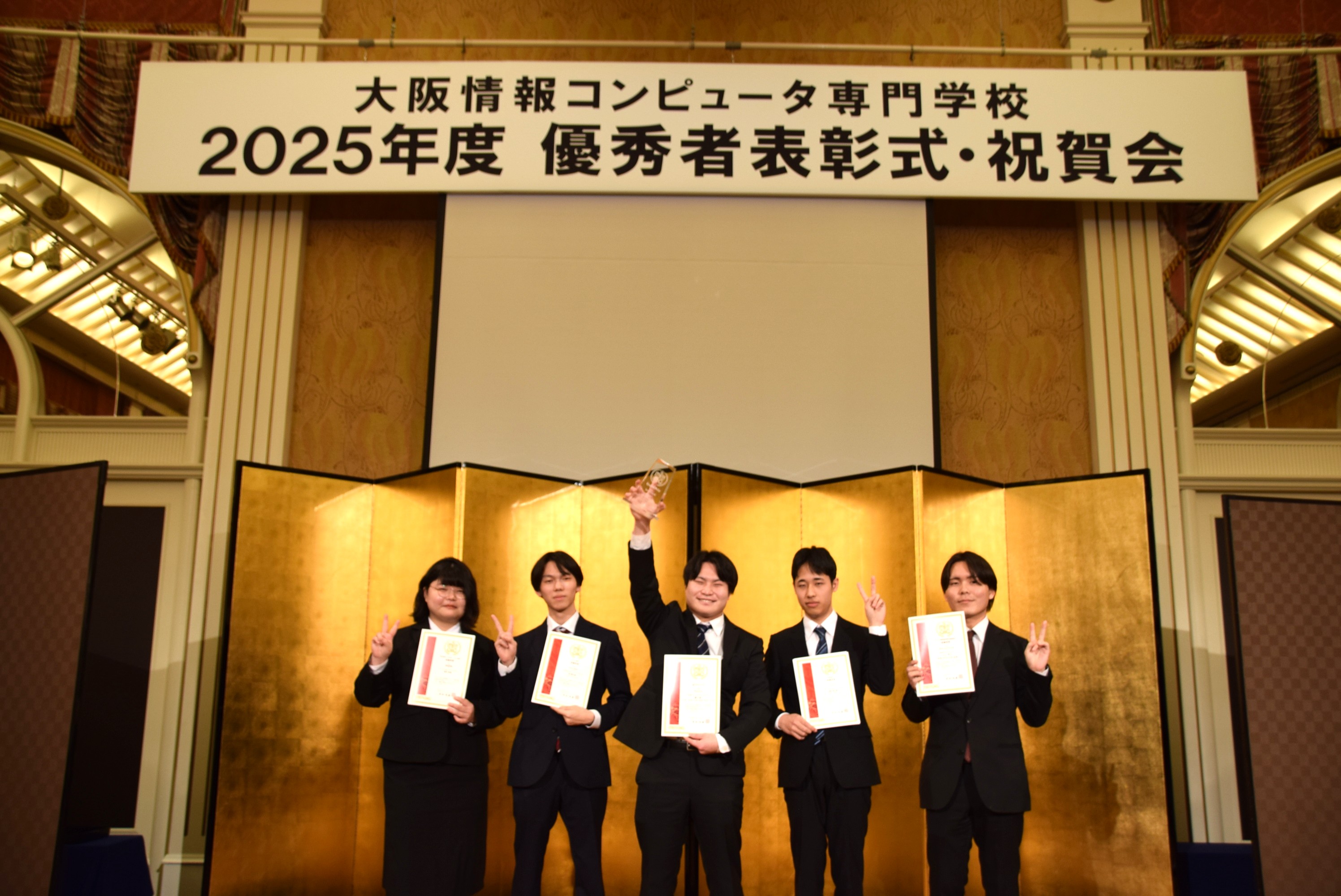 OICでは、難関国家資格に合格した学生や、学生作品展・外部コンテスト等のものづくりにおいて高い評価を受けた学生たちの1年間の努力と功績をたたえ、学校全体でお祝いしています。今年も多くの優秀な学生が本会へ招待され、スーツやドレスを身にまとった学生たちの姿で会場はにぎわいました。