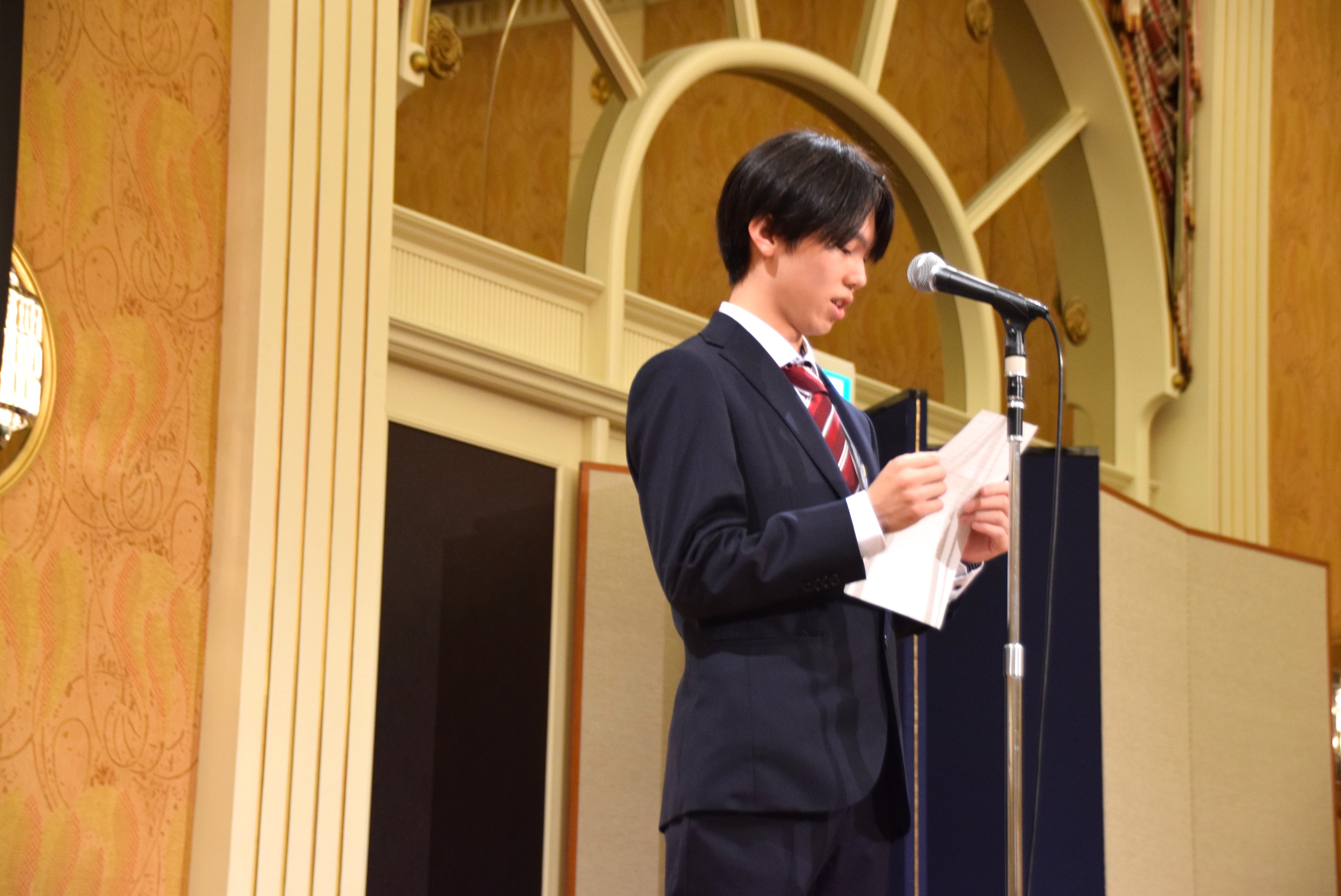 表彰者の代表として、最優秀賞を受賞された総合情報メディア学科ネットワークセキュリティ専攻3年の土永さんが挨拶をしました。「技術を使って、誰かの日常に『小さな感動』と『確かな安心』を届けたい」という思いからITを志した土永さんは、チーム制作によるシステム開発と資格試験への「挑戦」の1年間だったとお話ししてくれました。チームの一員として開発したシステムはメディアフロンティア・グランプリを受賞し、資格試験では、レベル4の高度情報処理技術者試験である情報処理安全確保支援士に見事合格されました。土永さんはここで立ち止まることなく、さらに挑戦を続けると決意をあらわにしていました。
